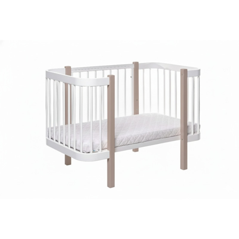 Pătuțul este realizat din lemn de fag, finisat cu lac non-toxic si vopsea pe baza de apa recomandata pentru mobilierul pentru copii.
